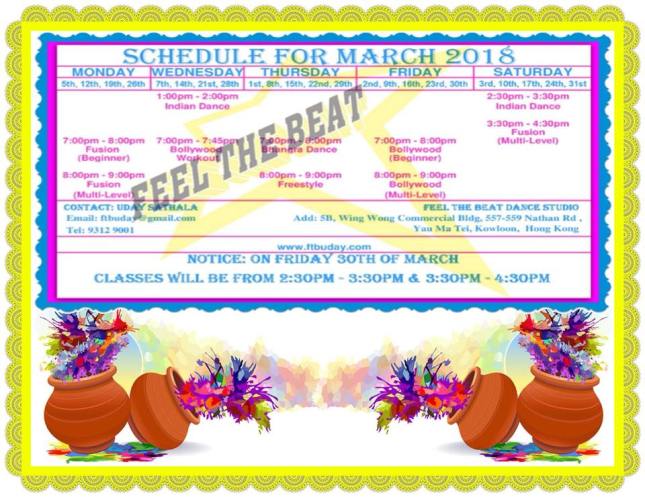 Posted by Feel the Beat on March 1, 2018 in ** Class Schedules **